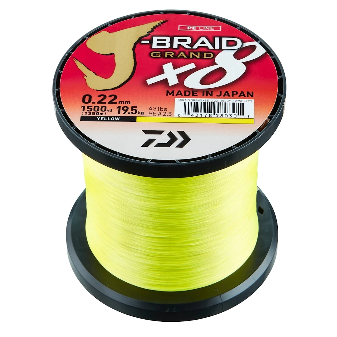 Daiwa J-Braid-linorna stiger nu till en helt ny nivÄ nÀr Daiwa presenterar sin J-Braid-premiumlina; J-Braid Grand. J-Braid Grand Àr en 8-fibrig PE-lina tillverkad i ett helt nytt rÄmaterial (Izanas).