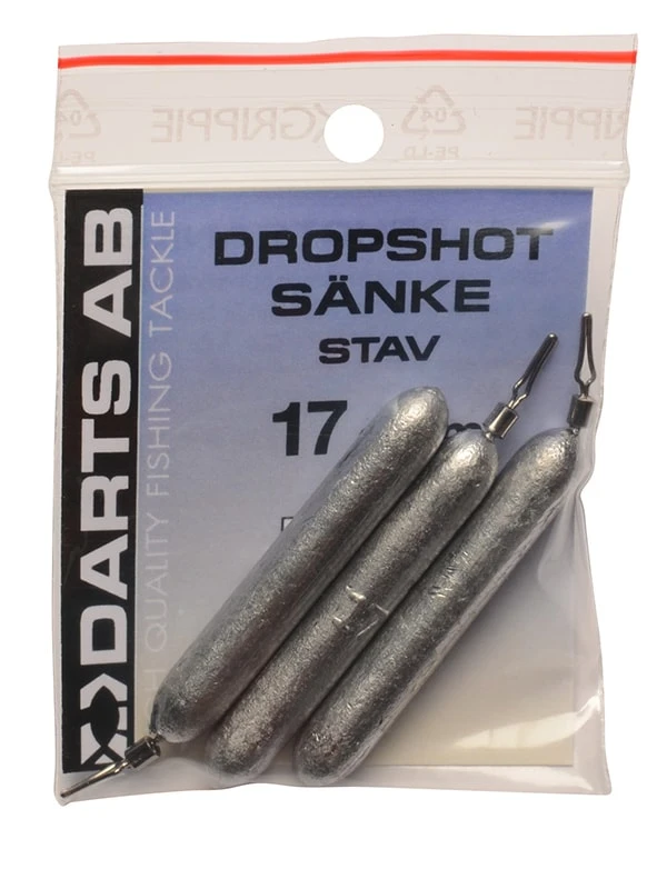 Darts stavformade dropshot-sÀnken Àr det bÀsta valet om bottnen Àr besvÀrlig, för att minska risken för bottennapp. SÀnket dras fast pÄ önskad plats.