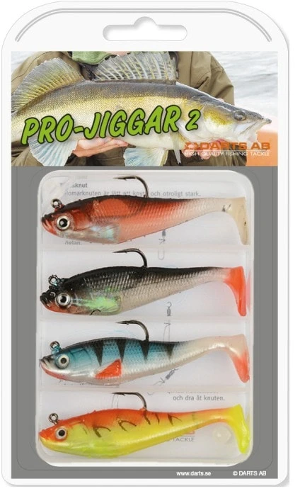 Darts Pro jigg-kit. Fiskliga jiggar med ingjuten vikt i jiggkroppen. Perfekt till abborren, gösen och gÀddan lÄter sig luras pÄ dessa godbitar. Klassisk shadjigg med fin lyster och hÀrlig gÄng.