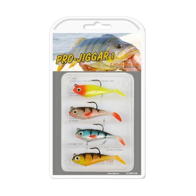 Darts Pro jigg-kit. Fiskliga jiggar med ingjuten vikt i jiggkroppen.
