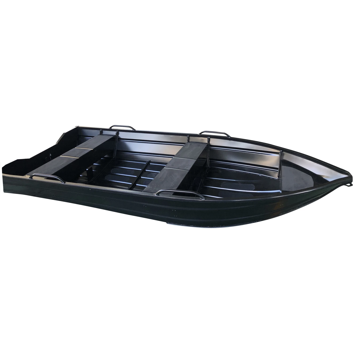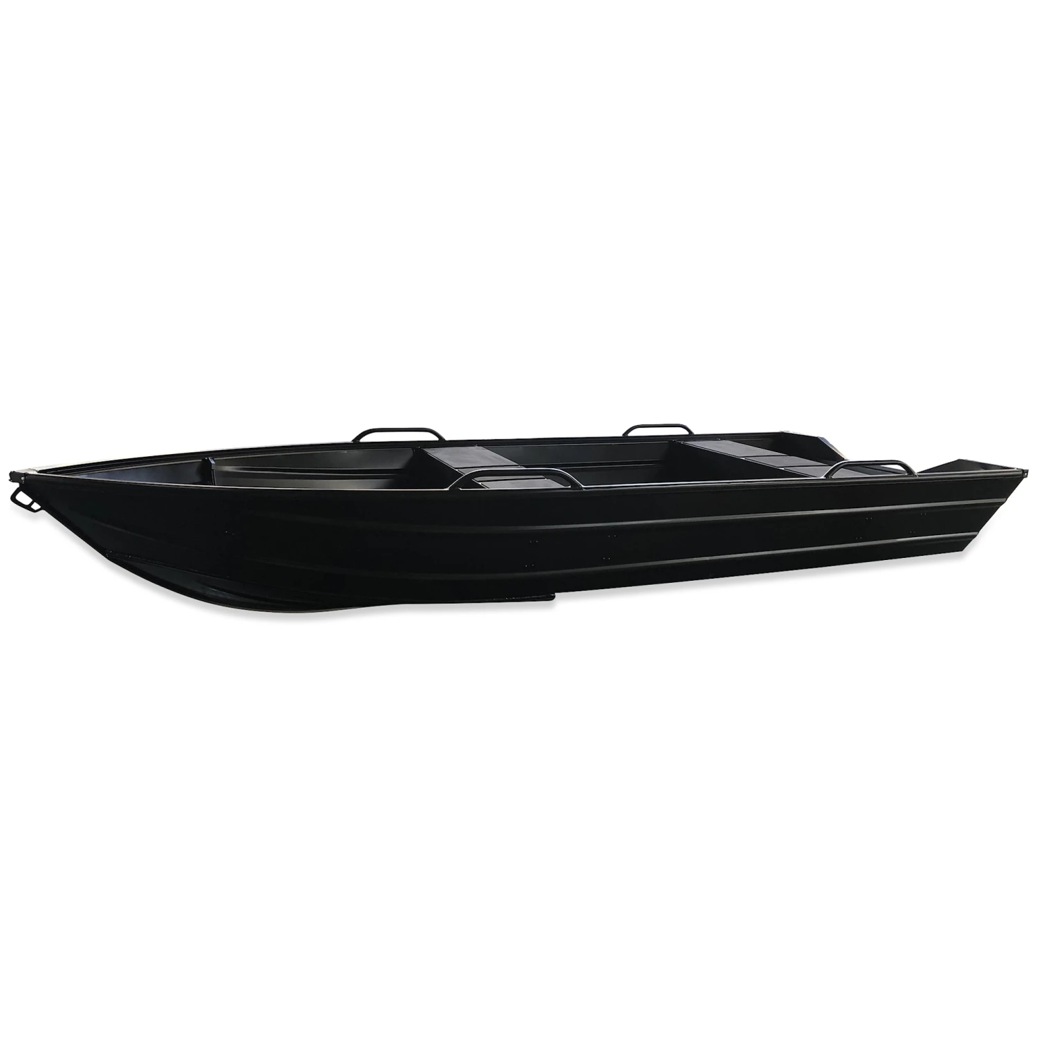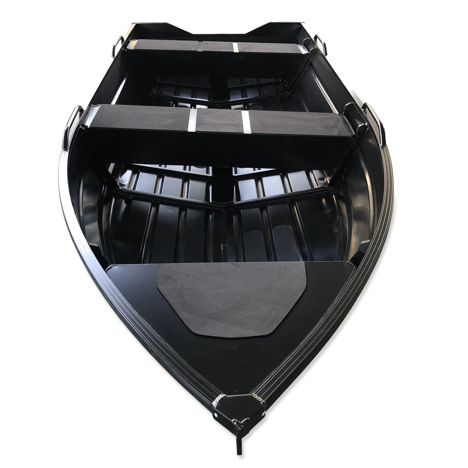 Rejäl aluminiumbåt, pulverlackerad i svart med fina sjöegenskaper och en passagerarkapacitet på 4 vuxna personer (maxlast 350kg). Passar perfekt som roddbåt eller fiskebåt för dagsturer. Båten väger endast 75kg vilket gör att den är lätt att hantera när du t ex ska sjösätta och ta upp båten. Om du önskar så finns möjligheten att koppla på en utombordare och du får en pigg och lättkörd motorbåt. Till denna båt rekommenderas en utombordare med en motor på maximalt 15hk (tvådelade plaståror ingår vid köp av båten).