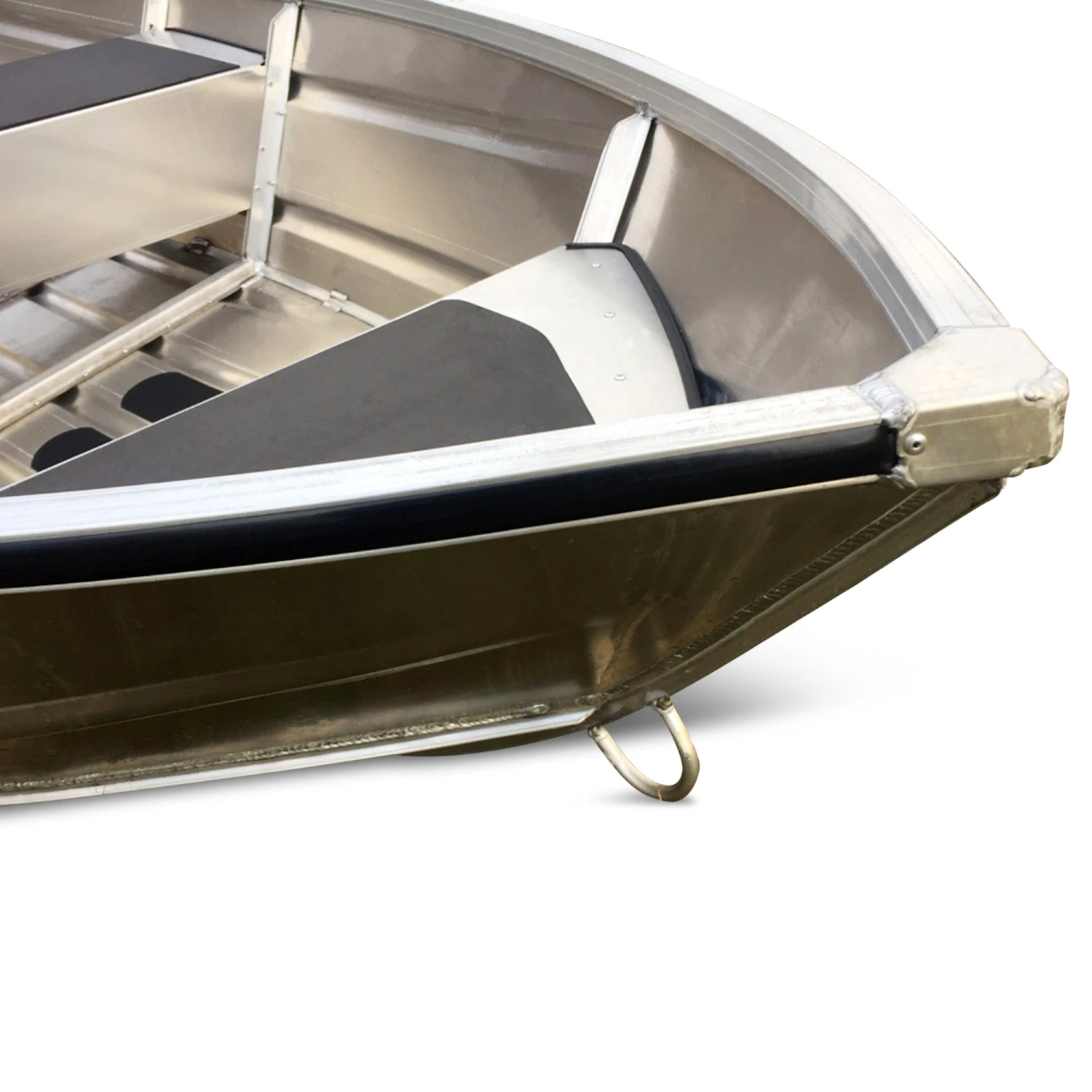 RejÀl aluminiumbÄt, pulverlackerad i svart med fina sjöegenskaper och en passagerarkapacitet pÄ 4 vuxna personer (maxlast 350kg). Passar perfekt som roddbÄt eller fiskebÄt för dagsturer. BÄten vÀger endast 75kg vilket gör att den Àr lÀtt att hantera nÀr du t ex ska sjösÀtta och ta upp bÄten. Om du önskar sÄ finns möjligheten att koppla pÄ en utombordare och du fÄr en pigg och lÀttkörd motorbÄt. Till denna bÄt rekommenderas en utombordare med en motor pÄ maximalt 15hk (tvÄdelade plastÄror ingÄr vid köp av bÄten). Kolla gÀrna in vÄra miljövÀnliga eldrivna utombordare.