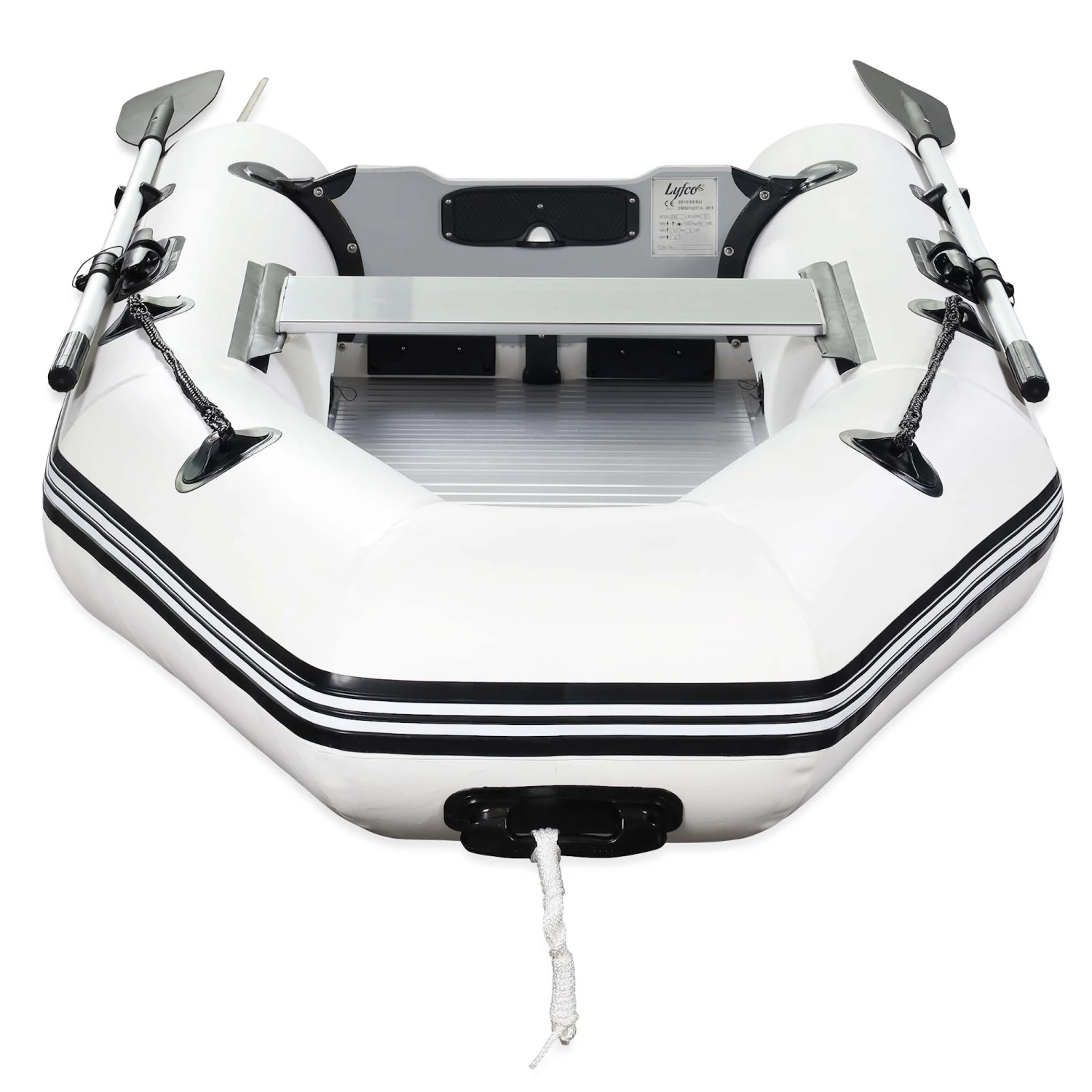 Den bestÀndiga aluminiumdurken ger hög stabilitet och stryktÄlighet jÀmfört med enklare gummibÄtar som har plast- eller trÀdurk. BÄten Àr tillverkad för hand i PVC-material av hög kvalitet. Mittskiktet Àr av polyester med en yta av PVC-material i 1000 Denier med 0,9 mm tjocklek. PVC-ytan Àr mycket slitstark och skyddar mot nötning, klimat och yttre pÄverkan. Sömmarna i bÄten Àr kallsvetsade för hand i fyra lager. MÄnga billiga gummibÄtar kan se liknande ut till det yttre men Àr inte tillverkade av samma högkvalitativa material och har mycket sÀmre hÄllfasthet och kortare livslÀngd.