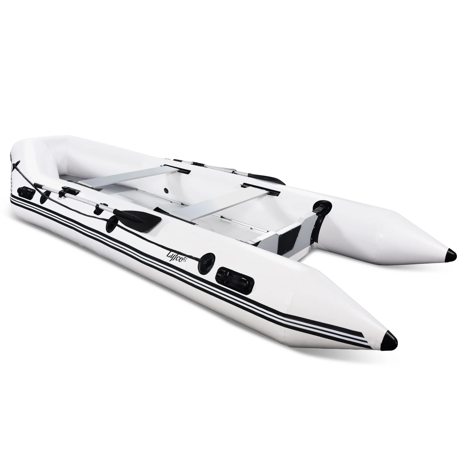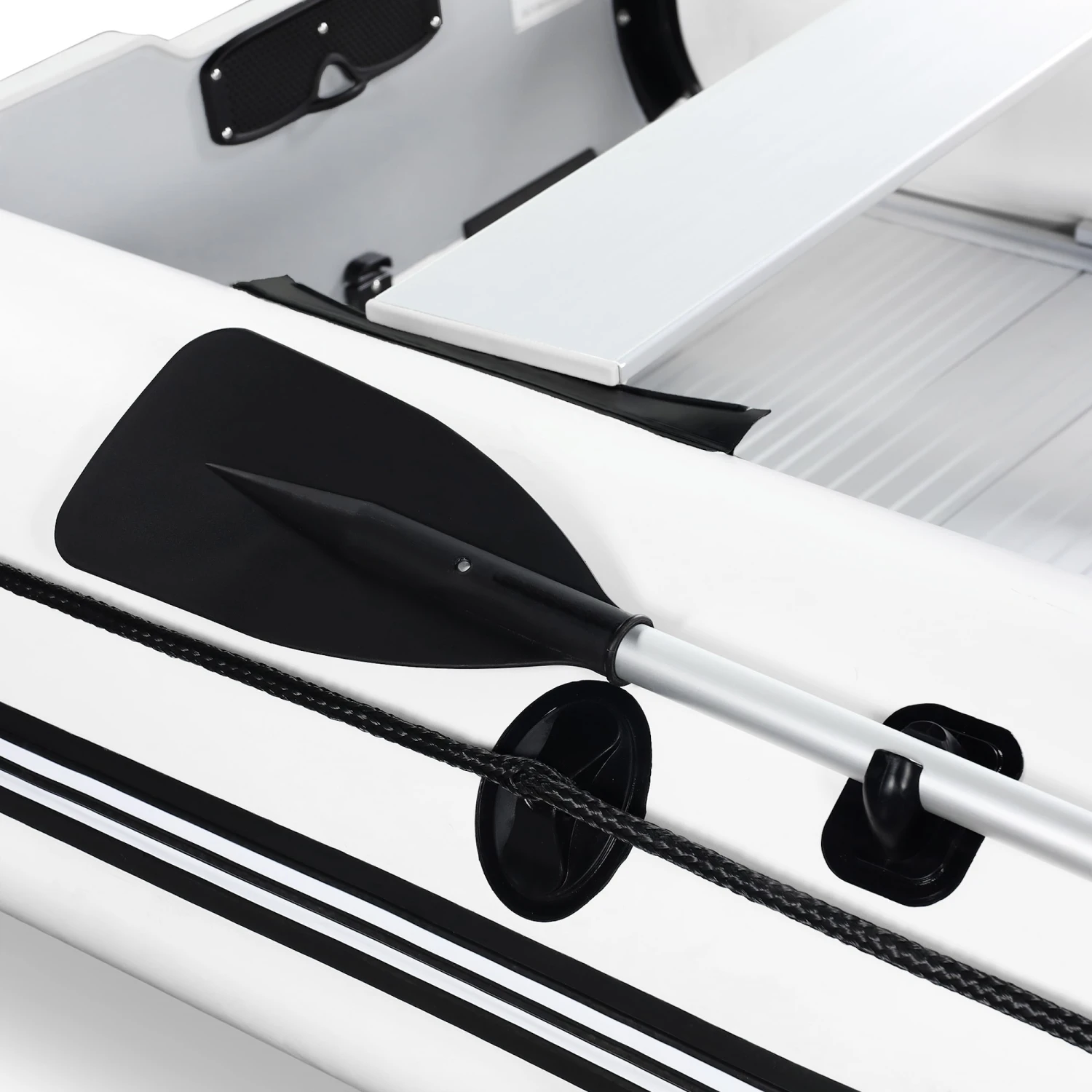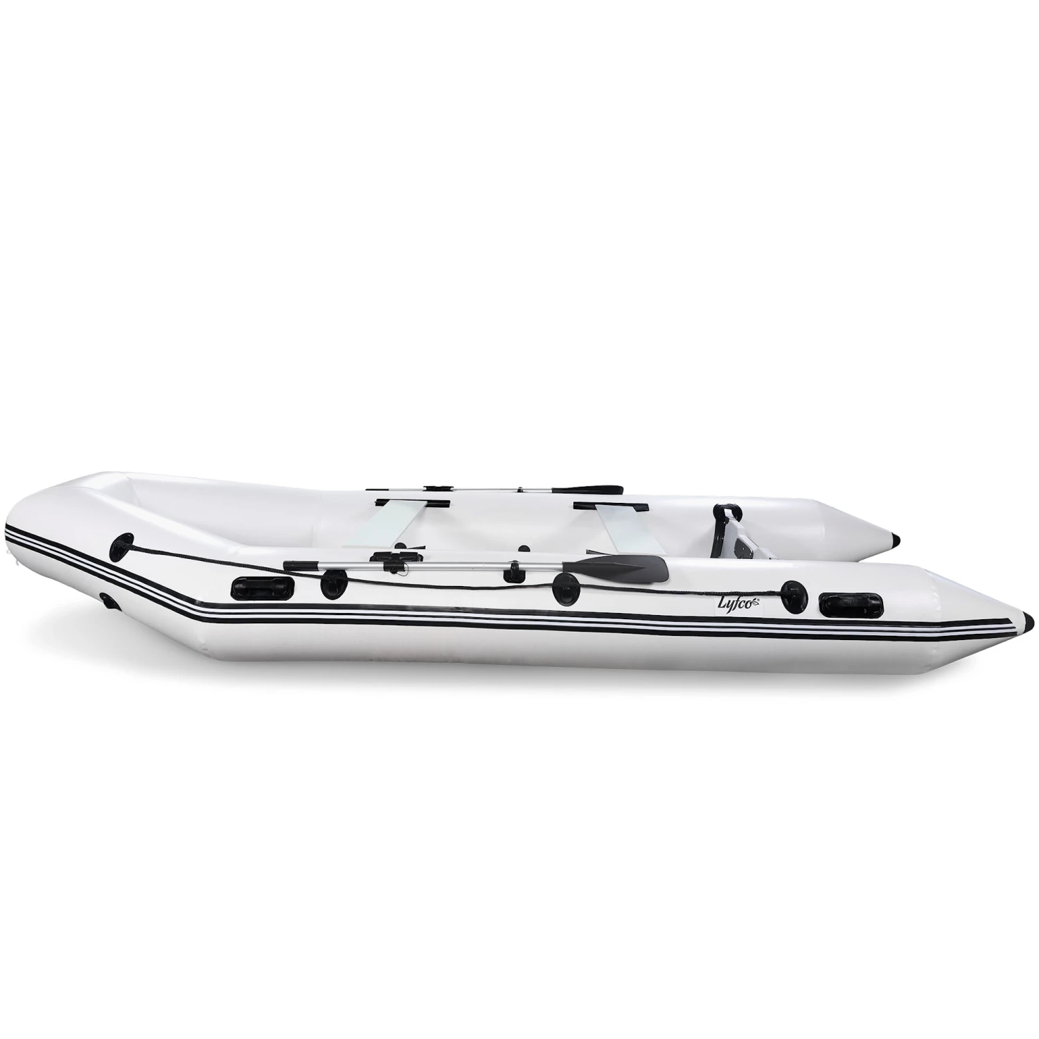 - Luftkammare: 3 pontoner (diameter 46 cm) + uppblÄsbar köl