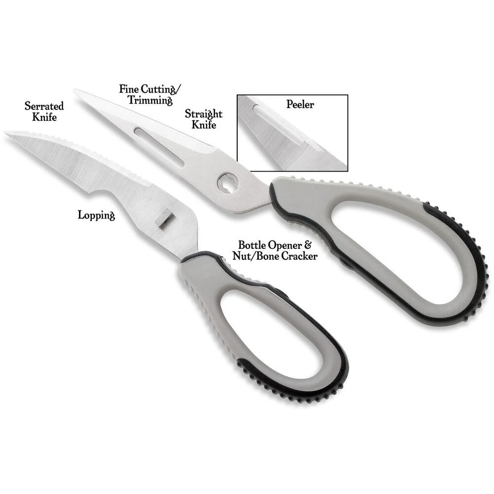 Rapala Fish & Game Shears Ă€r ett multifunktionellt verktyg med överdimensionerat handtag för att man ska kunna ha handskar pĂ„ sig. Saxen kan demonteras till tvĂ„ knivar, en med vanligt blad och en med tandad blad. Ăvriga anvĂ€ndningsomrĂ„den Ă€r till exempel krabb kloknĂ€ckare och flasköppnare.