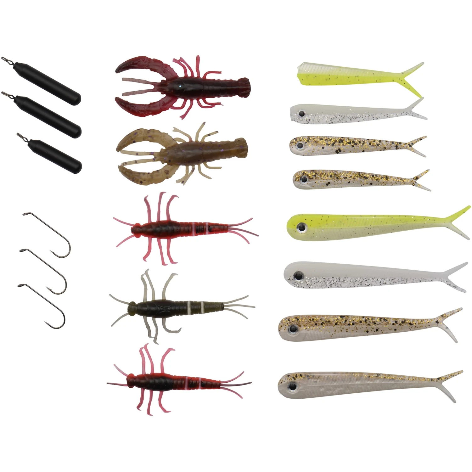 Betesask med Savage Gear jiggar med matchande krok och vikter för att komma igång med dropshotfisket.