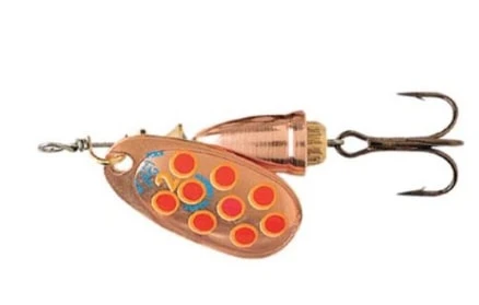 En Vibrax med dubbla signalerande prickar pÄ skeden, mÄlade i tvÄ skikt, vilket vÀcker fiskens uppmÀrksamhet och verkar i högsta grad irriterande.